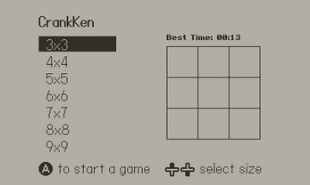 - Crank: Scroll through numbers / Select grid size