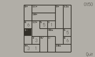 | Tags | Black and White, brain-teaser, Casual, crank, logic, Math, number-puzzle, Playdate, Singleplayer |