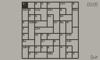 CranKen is a crank-powered KenKen math puzzle game built for Playdate. Spin the crank to dial in digits, fill every row and column, and solve cage constraints across seven grid sizes -- from a breezy 3×3 warm-up to a brain-melting 9×9 marathon. Every puzzle is procedurally generated, so there is always a fresh challenge waiting.